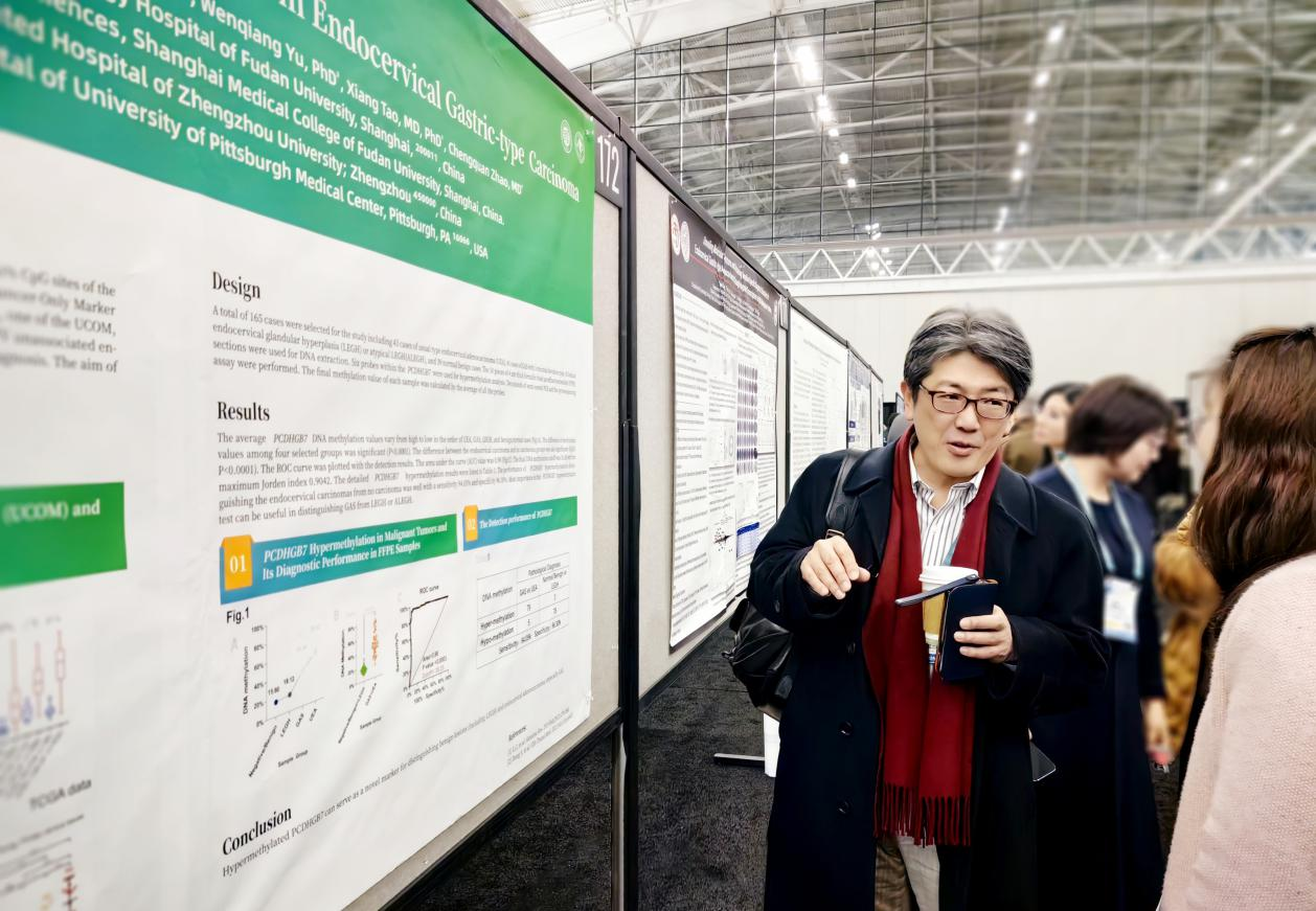 The 114th Annual Meeting of the United States and Canadian Academy of Pathology (USCAP) was held in Boston, Massachusetts, USA from March 22 to 27, 2025. The USCAP Annual Meeting is the world's largest and most influential academic conference for pathology professionals. Every year, thousands of professionals from hospitals, private laboratories, academic institutions and government agencies in pathology and related professional fields such as molecular, oncology and immunology attend the meeting. USCAP is one of the most influential international academic organizations in the field of pathology and a global leader in the dissemination of knowledge in the field of pathology, with more than 10,000 pathologist members. USCAP enriches, develops and disseminates knowledge about human pathology and comparative pathology by promoting research, organizing scientific conferences and publishing scientific journals. The research results from the Obstetrics and Gynecology Hospital Affiliated to Fudan University (Shanghai Red House Obstetrics and Gynecology Hospital), the team of Professor Yu Wenqiang from the Institute of Biomedical Sciences of Fudan University, and Professor Zhao Chengquan from the School of Medicine of the University of Pittsburgh - " PCDHGB7 "The Diagnostic Value of Gene Hypermethylation in Cervical Gastric Adenocarcinoma" was presented as a poster and academic exchange at the USCAP2025 Annual Meeting, which may rewrite the new pattern of diagnosis and treatment of cervical gastric adenocarcinoma .